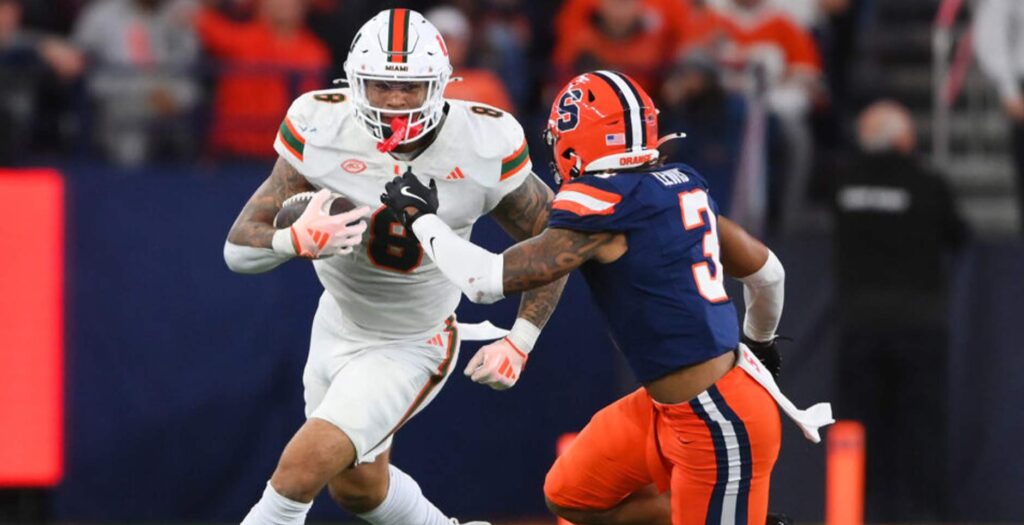 Pick 66 (via Titans) – TE Elijah Arroyo (Miami) – If you want a tight end to play with Patrick Mahomes, you must be able to improvise. Arroyo would excel at making plays for the Chiefs when the original play breaks down. He’s a massive target, a great route runner with good speed, and possesses the hands desired at the NFL level.