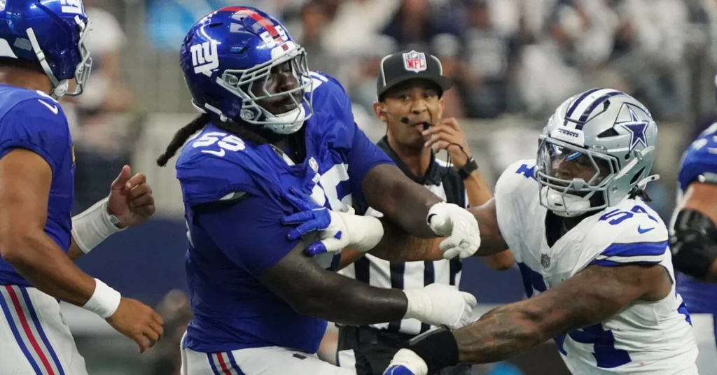 He is a 6’5″, 313-pound offensive tackle who spent four seasons in the NFL with the Giants and the Browns. In the 2025 season, he played 85 offensive snaps, allowing 1 sack, 2 hits, and 4 hurries. Additionally, he recorded five penalties during that season. Some of his strengths include his versatility at both right and left tackle, his ability to reach the second level in run blocking, and his skill in handling speedy edge rushers.