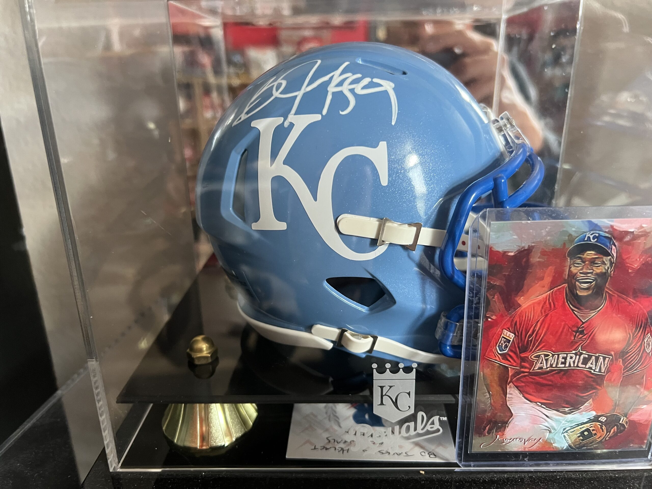 This one-of-a-kind Bo Jackson signed Mini Helmet is a must-have for Kansas City Royals fans this COA item comes with a Royals Engraved Case
