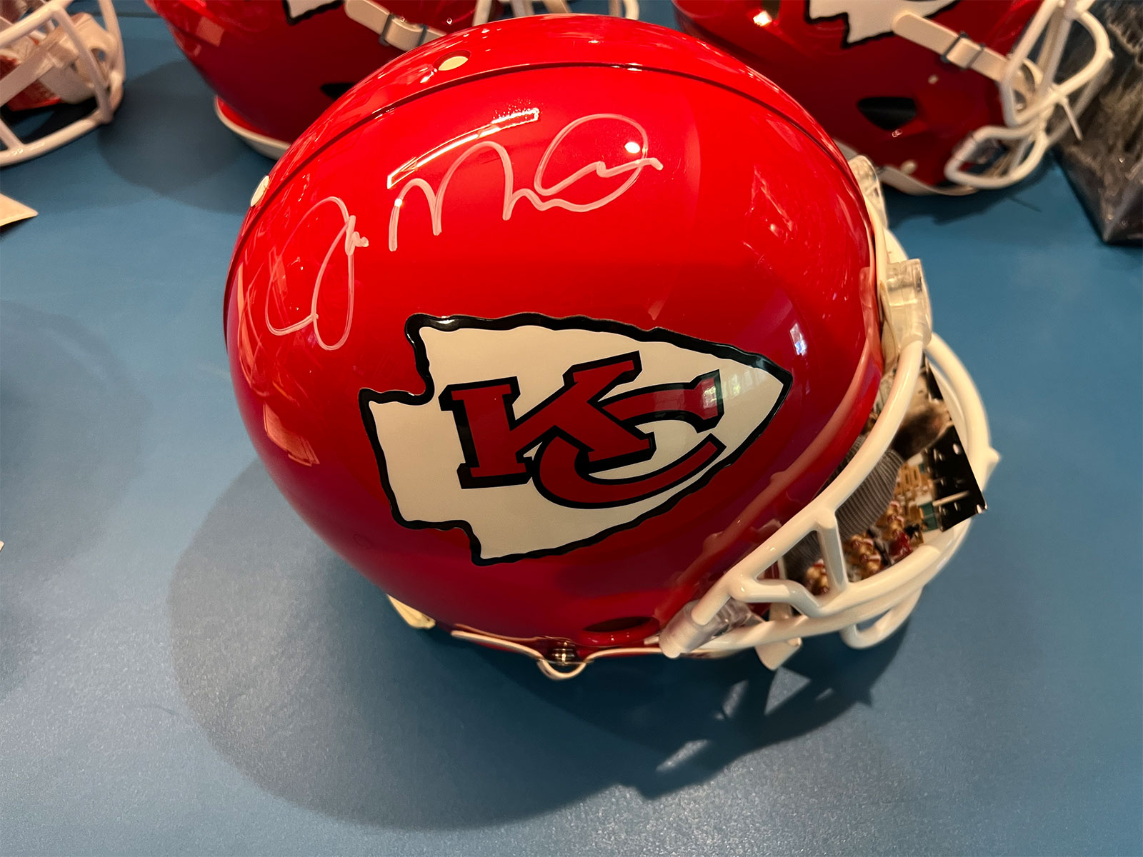 Hall of Fame Inductee Joe Montana signs this Kansas City Chiefs full-size helmet. This rare piece of Chiefs Royalty comes with proof of authenticity.