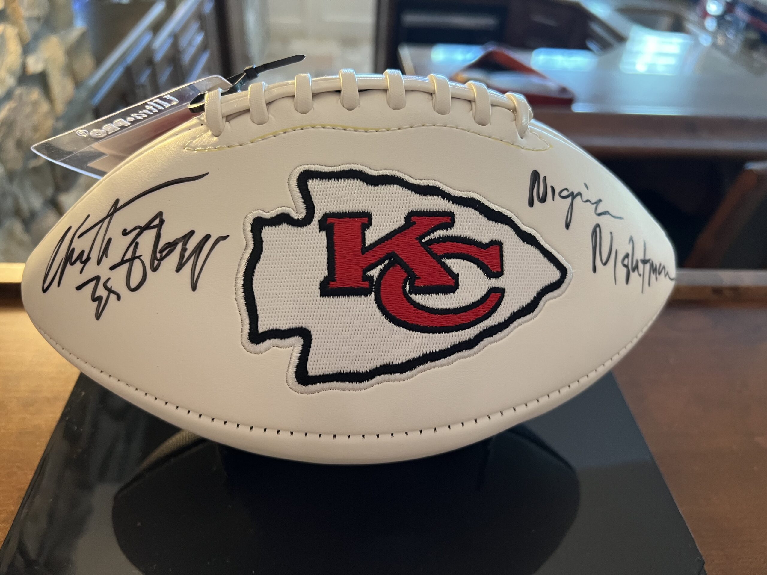 Christian Okoye Signed Kansas City Chiefs Football with ‘Nigerian Nightmare’ transcription.