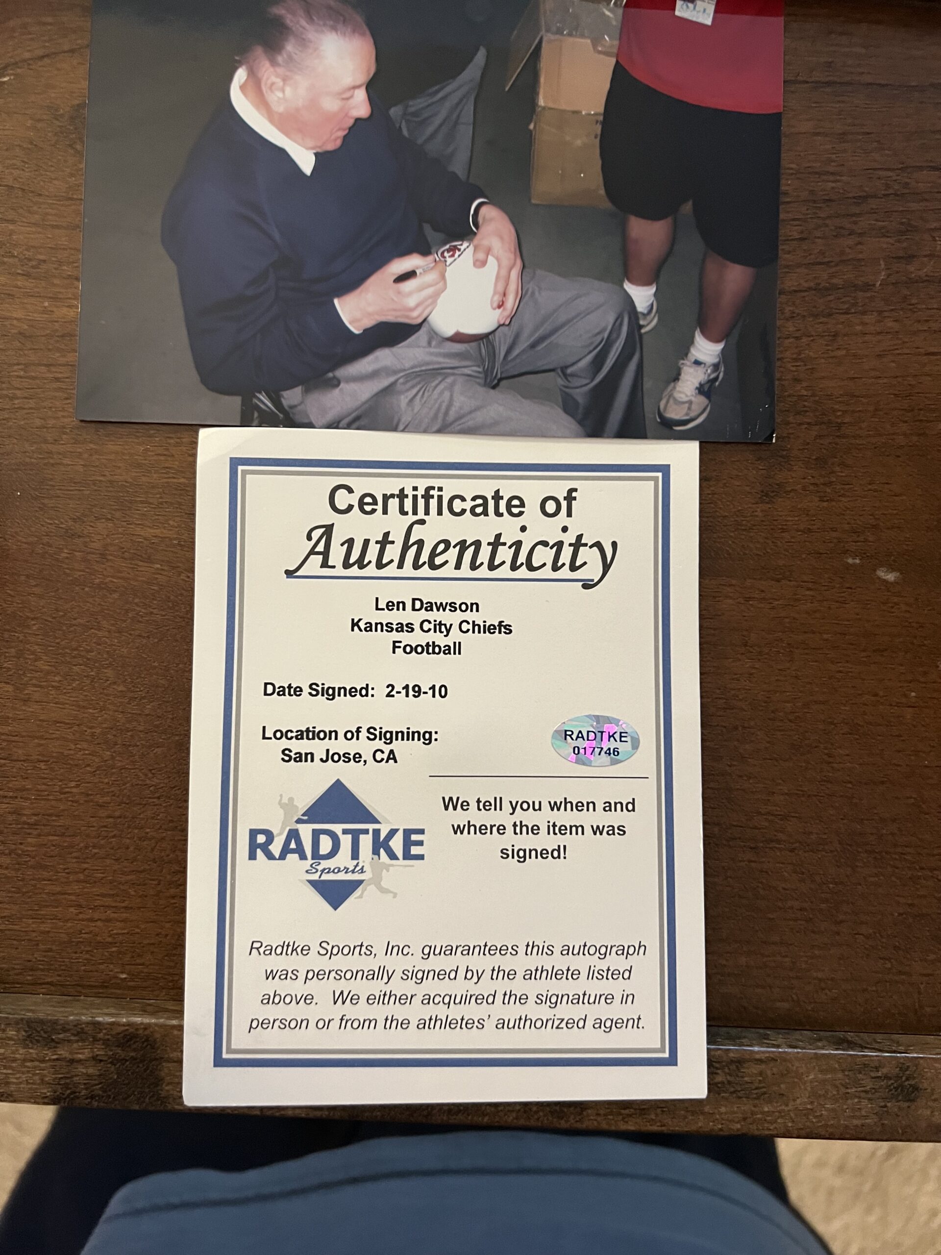 The late Len Dawson remains a Kansas City Chiefs Icon. These HOF-signed Chiefs footballs of Lenny the Cool are becoming rarer with each year of his passing.