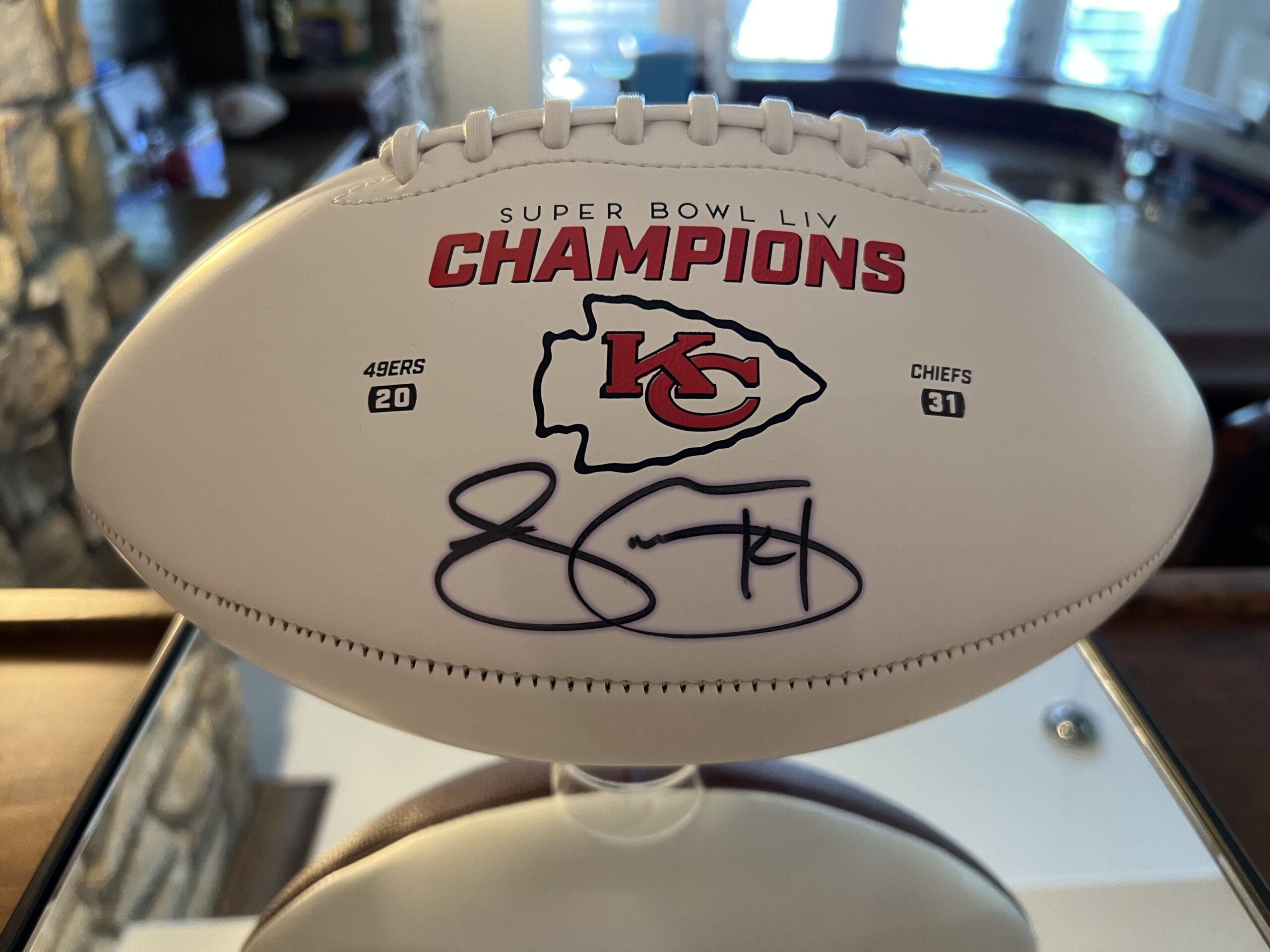 The Kansas City Chiefs signed Super Bowl LIV wide receiver Sammy Watkins, who was a force in breaking the 50-year gap for the Chiefs to become Super Bowl Champions once again. This rare SB LIV Football with the final score can be yours now.
