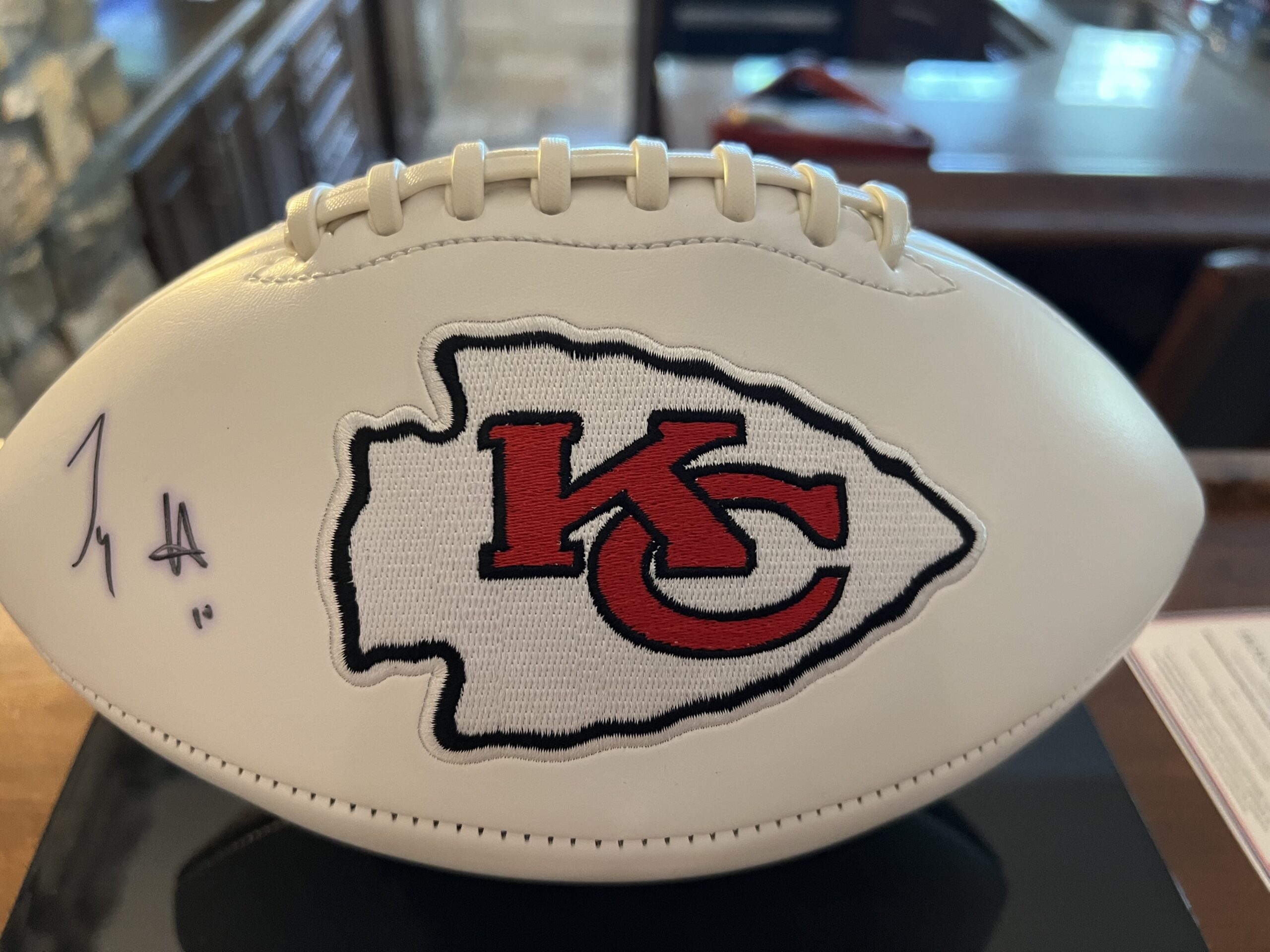 The Kansas City Chiefs signed Tyreek Hill (#10) Football is a must-have gift for fans of the Cheetah! With his career in doubt due to his recent injury, this is a collectors item you need!