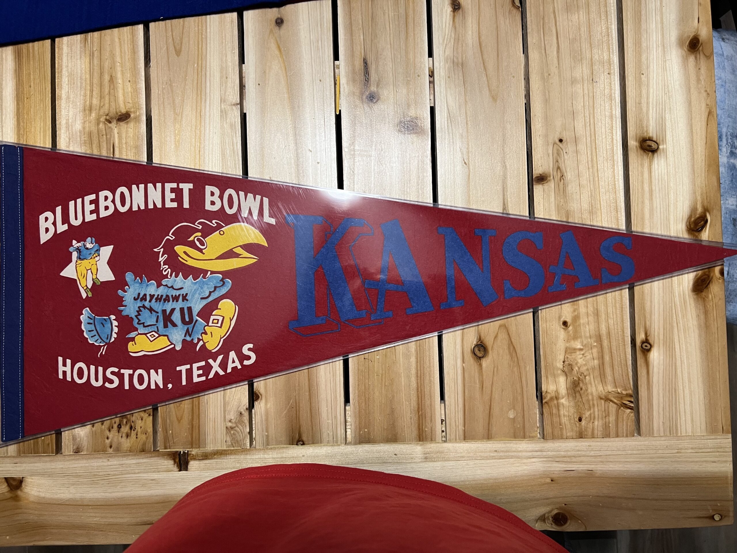 Kansas Jayhawks 1961 Independence Game Day Pennant. Mint Condition! Will be shipped in a hard pennant cover inside flat shipping packaging.