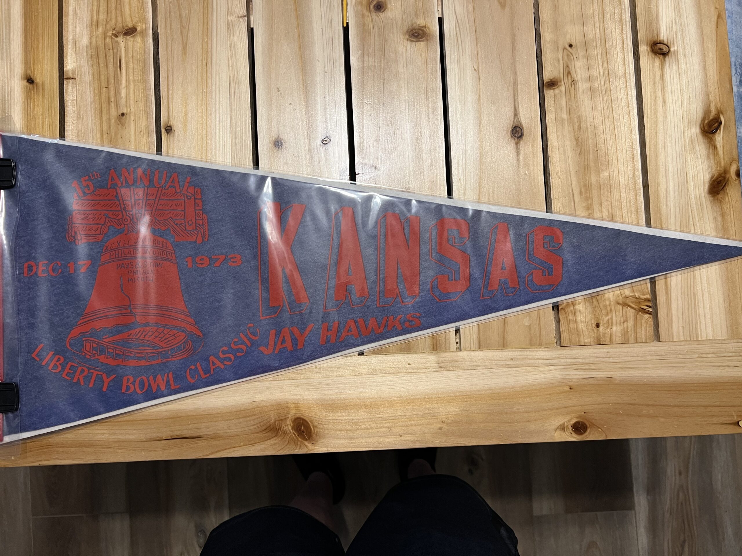 Kansas Jayhawks 1972 Liberty Bowl Game Day Pennant. Near Mint Condition! Will be shipped in rolled bubble wrap.