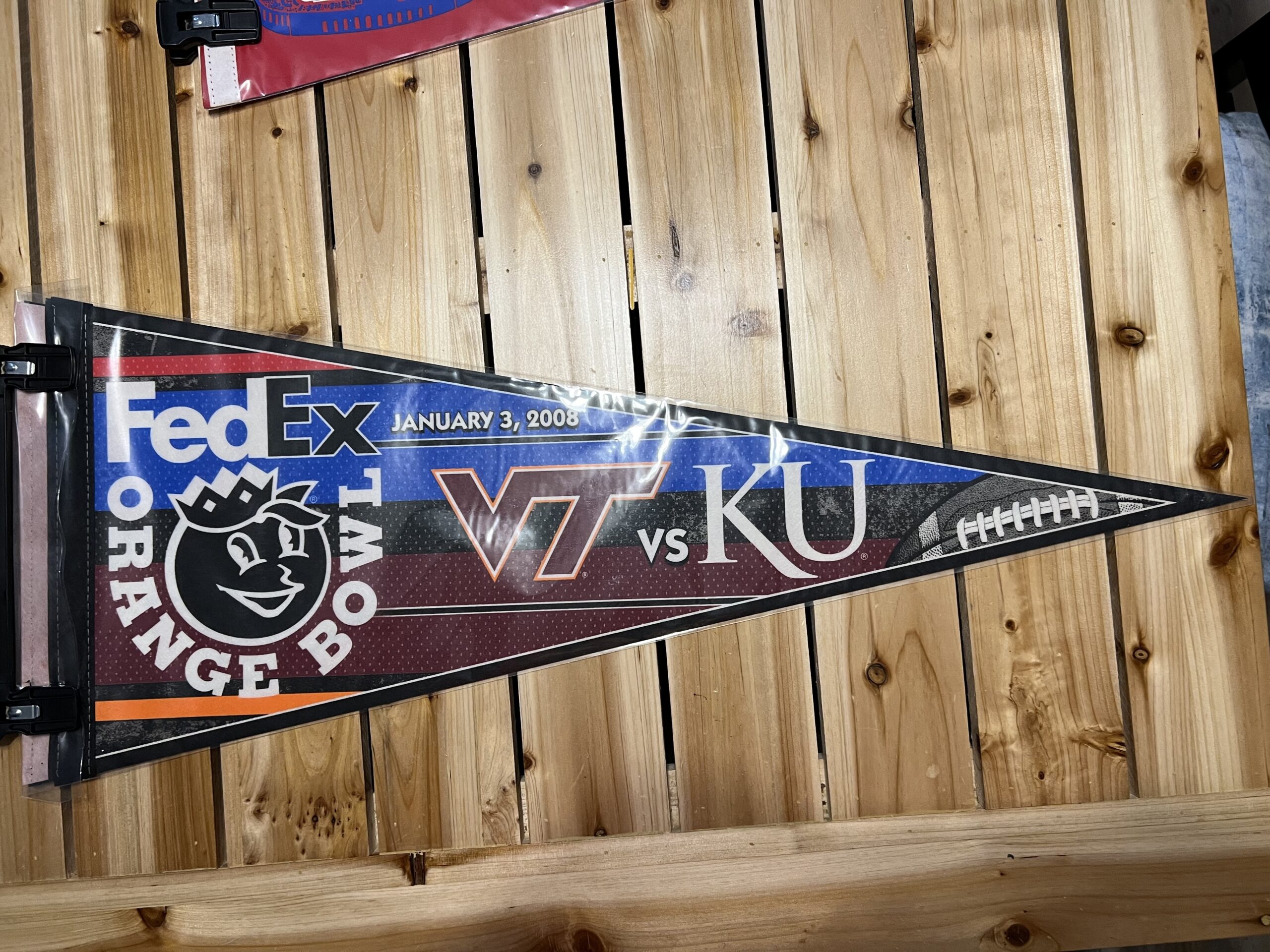 Kansas Jayhawks 2008 FedEx Orange Bowl Game Day Pennant. Near Mint Condition! Will be shipped in rolled bubble wrap.